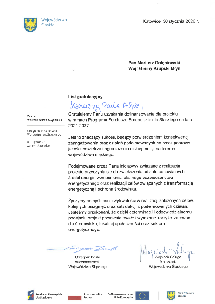 W Urzędzie Marszałkowskim Województwa Śląskiego wręczono listy gratulacyjne przedstawicielom gmin, które uzyskały dofinansowanie na realizację projektów związanych z rozwojem energetyki rozproszonej opartej na odnawialnych źródłach energii.